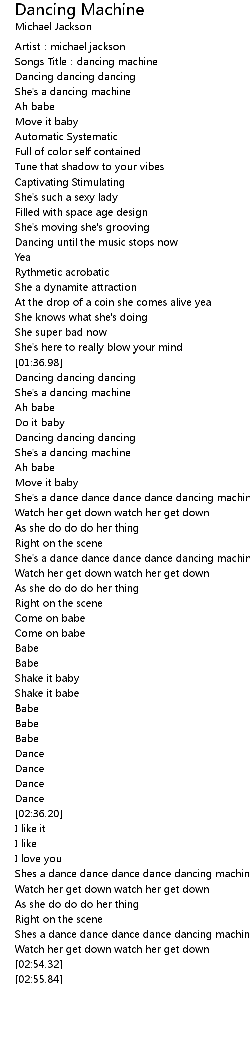 Dancing Machine Lyrics Follow Lyrics